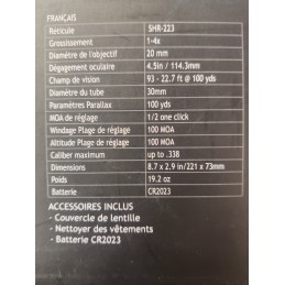 Réticule SHR 223 ( calibré pour les 55 et 62 grains jusqu'à 500 m )